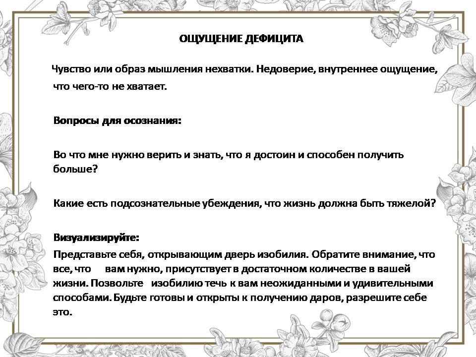 ОЩУЩЕНИЕ ДЕФИЦИТА