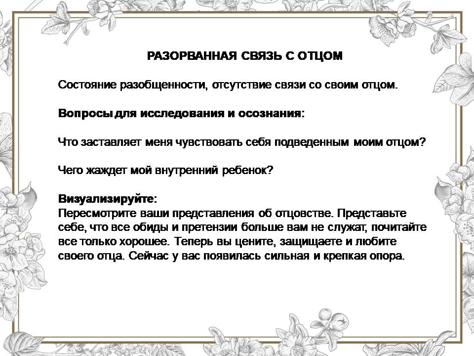 РАЗОРВАННАЯ СВЯЗЬ С ОТЦОМ